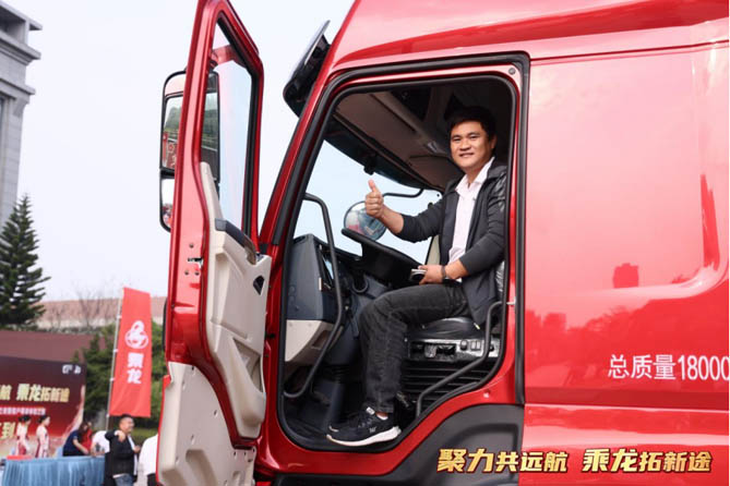 一位乘龙老用户拍着乘龙H5绿通房车的车厢说:“乘龙的车皮轻是出了名的,这车可以轻松拉11吨免费上高速,每趟都比同行赚得更多!”
