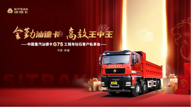 中国重汽汕德卡 G7S 工程车,是针对新疆地区特殊工况和用户需求量身打造的专属产品。自上市以来,凭借其卓越的性能、可靠的品质和贴心的服务,赢得了广大用户的信赖和好评,成为新疆工程运输领域的明星产品。此次活动的圆满举行,不仅有效拓宽了产品的市场覆盖版图,更为激活新疆货运市场活力,疏通区域货运脉络奠定坚实基础,进一步巩固了中国重汽在新疆高端工程车市场的标杆地位。