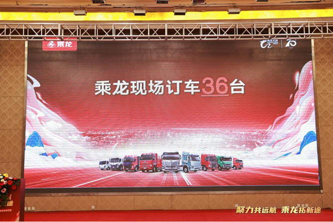 多款乘龙明星产品凭借卓越性能与专项优惠政策,赢得了卡友们的一致青睐,现场达成订购36台。