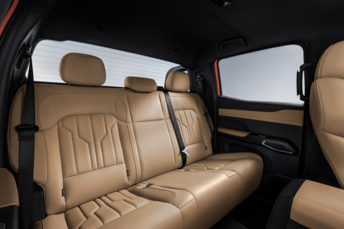 座椅系统的分块设计堪称人机工程学典范:前排坐垫采用高回弹材质,靠背侧翼支撑角度经过成百上千次仿真测试,确保长途驾驶腰部受力均匀,即使连续驾驶数小时也不会感到腰酸背疼;后排26度黄金靠背角搭配494.2mm超长坐垫,让儿童腿部全程舒适支撑、老人久坐也不会感到腿部酸胀麻木,对家庭出行十分友好!这种将乘用化体验注入皮卡基因的设计,本质是对“车为人服务”理念的回归。
