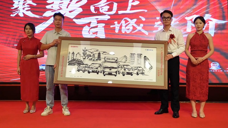 随后进行的授牌仪式上,好用车总经理助理张庆先生将授权牌匾正式授予广西乾程总经理杨权先生,这一纸授权,是信任的凭证,更是责任与共赢的开始。好用车南部战区副总监戴礼军先生则向广西乾程业务总监陆梁波先生赠送了独具寓意的芜湖铁画礼品,象征着双方合作如铁画般历经锤炼,坚不可摧,历久弥新。
