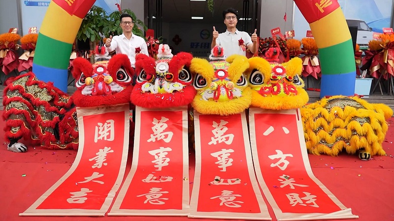 庆典于上午9:58分准时拉开帷幕。在主持人热情洋溢的开场后,一场充满中华传统文化韵味的舞狮点睛仪式率先点燃全场。好用生态平台总经理江文波先生与广西乾程似锦新能源运营管理有限公司总经理杨权先生共同执笔,为祥狮点睛。“一点左眼,生意兴隆;二点右眼,顺风顺水;三点口舌,大吉大利!”随着主持人的吉祥祝词,点睛仪式圆满完成,寓意着为新店赋予生命与灵气,开启智慧与吉祥的未来。