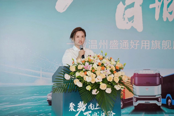 随后,温州骏驰物流科技有限公司总经理李立建先生为温州盛通好用旗舰体验中心证词,他表示;今日的战略携手,我们始终坚信:商用车行业的未来,必然是科技驱动与生态共赢的未来。未来,并将以 “以用户为中心” 为初心,依托好用生态平台的资源优势与宇树科技的技术支撑,深耕温州本地市场,为司机伙伴提供更智能、更高效的用车服务,助力城配运输领域的升级革新。