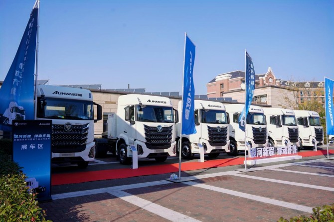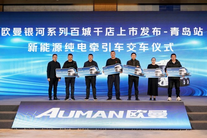 2025年11月12日,以“银河新程 绿动齐鲁”为主题的欧曼银河百城千店山东区域新能源纯电牵引车上市发布会在青岛举行。活动现场,凭借“精准适配场景、全周期运营成本低、全维度安全有保障”核心优势,欧曼银河5M纯电牵引车,一举收获208台签约订单,并顺利完成首批交付。这不仅是欧曼深耕山东物流市场、聚焦区域场景创新的重要举措,更展现出欧曼以优质产品赋能华东物流低碳转型、助力区域经济高质量发展的坚定立场。