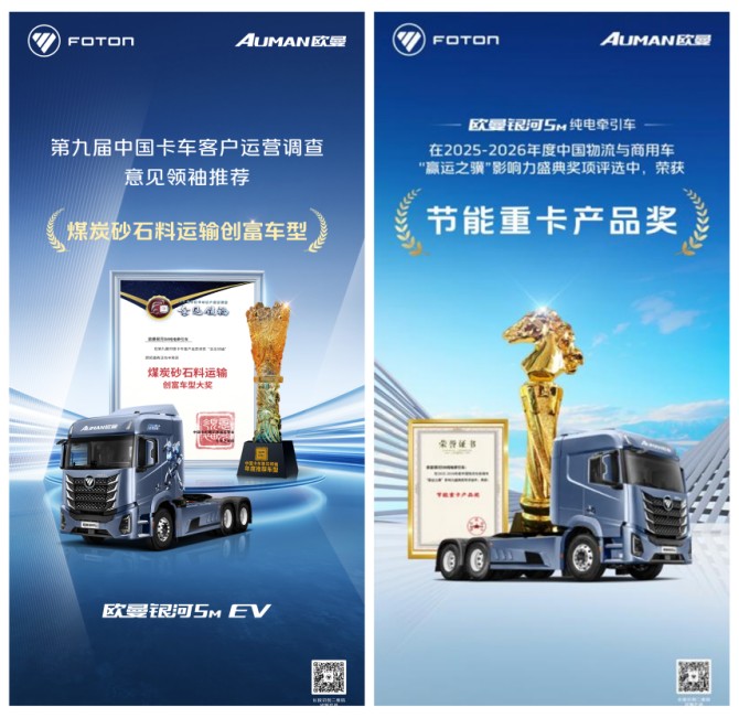 从传统能源到新能源,欧曼银河全系车型的荣誉加冕,彰显了品牌全方位的技术实力与产品竞争力。作为商用车行业的重要参与者,欧曼始终以用户需求为导向,以技术创新为引擎,在绿色物流转型的浪潮中,不仅为用户提供了“买得值、用得省、跑得稳”的运输解决方案,更以实际行动推动行业向高效、低碳、智能方向加速演进。未来,欧曼必将持续突破,以更卓越的产品与服务,赋能每一位运输人,书写商用车行业高质量发展的全新篇章。