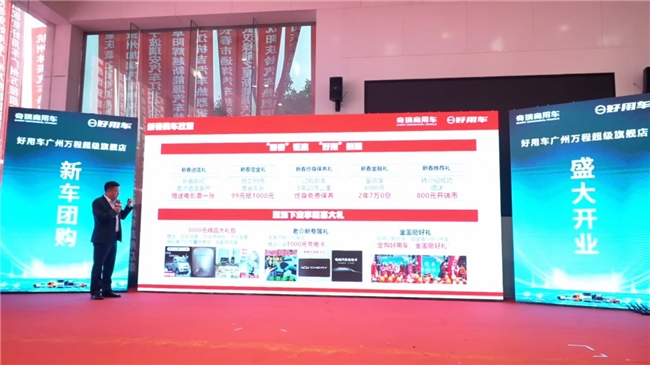 9:10,庆典核心环节正式开启,万程公司董事长隋玉新与奇瑞商用车生态事业部总经理江文波先后登台致辞。隋总分享了万程与好用车携手深耕广州市场的初心,阐述了超级旗舰体验中心打造本地化、一体化商用车服务体系的规划;江总则深入解读双店同开的战略深意 —— 超级旗舰体验中心聚焦商用车 “选、购、租、服” 全周期运营解决方案,好用能途配形象店主打智能维修、智能服务、智慧回收三大核心板块,二者协同构建“车 + 配”一站式闭环服务,标志着奇瑞商用车好用车品牌在大湾区完成从单一销售到生态服务的全面跃迁。