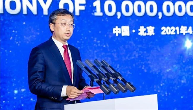 北汽集团党委副书记、总经理张夕勇对福田汽车用1000万辆新品下线迎接25周年庆典、献礼中共百年华诞表示热烈祝贺和由衷肯定。他在讲话中指出:福田汽车仅用25年时间,不仅成为了北汽集团高质量发展的中流砥柱,也是中国最年轻、全球最具潜力的商用车企业之一。今天,福田汽车的整车销量正式突破 1000 万辆,也是北汽集团第一家迈过千万辆门槛的自主整车企业。1000 万辆,是里程碑,亦是新起点。福田汽车之前景,正如今天下线的欧曼全新产品——欧曼银河,彰显着创新与合作的力量,希望福田汽车也继续秉承自主创新、开放合作的发展理念,不断蓄势、奋力前行,迈向一个又一个千万辆里程碑。北汽集团也将一如既往地全力支持福田汽车发展。