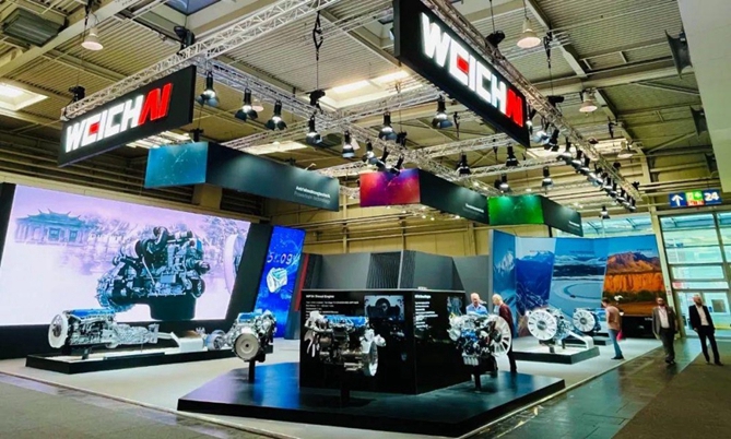 此次潍柴动力还在2022 IAA上展出基于全新H平台的WP2H/5H/8H/15H等数款H系列产品,功率覆盖190-660马力,为全球轻中重型商用车提供更清洁、更高效、更可靠的全系列、全领域动力产品。