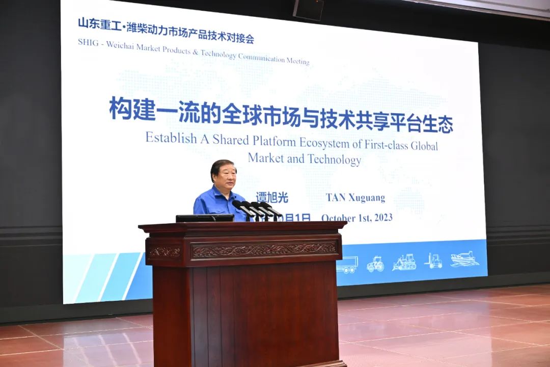 10月1日下午3:00,山东重工·潍柴动力市场产品技术对接会启动会在潍柴动力工业园区举行,谭旭光作主旨讲话。全球各权属公司、各研发中心技术与营销人员参加会议。