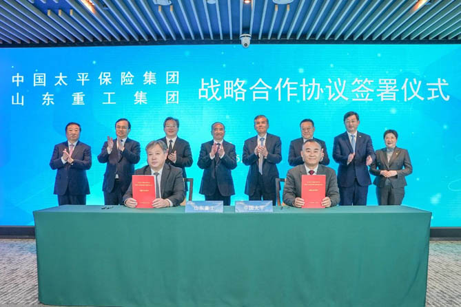 5月28日上午,山东重工与中国太平保险集团在香港签署战略合作协议,双方拟在投融资、保险、出口金融等领域开展全球深度合作,推动企业共同迈向世界一流。林武书记、范波秘书长、宋军继副省长、中国太平王思东董事长、谭旭光等出席活动并见签。