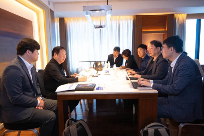 谭旭光到韩国唐津市走访博杜安发电设备代理商HANATEC,并与COMMERICAL总经理金荣星、HANATEC CEO郑钧座谈交流。