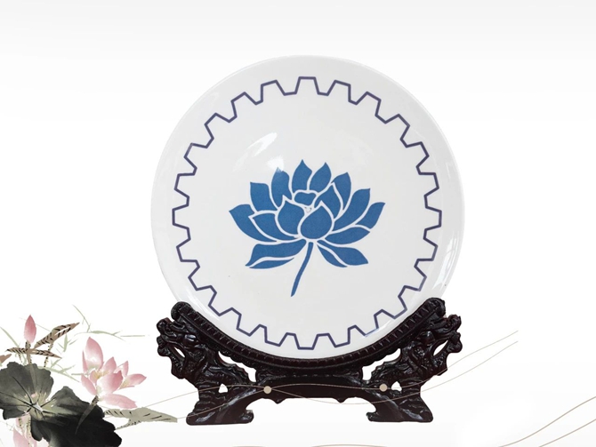 作品来自潍柴株洲齿轮公司,结合株洲陶瓷特色,蓝白配色,添以青莲、齿轮等元素,象征企业发展中对廉洁品质的坚守。