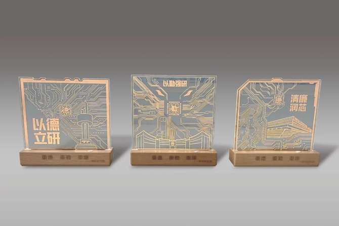 作品将“三重”廉洁文化与芯片元素相结合,以雅致、亲切的小夜灯方式融入日常生活,展现“三重为基,廉灯常亮”。