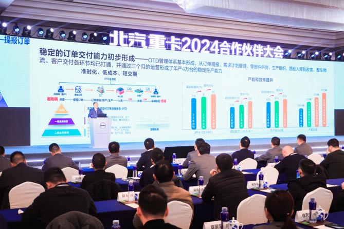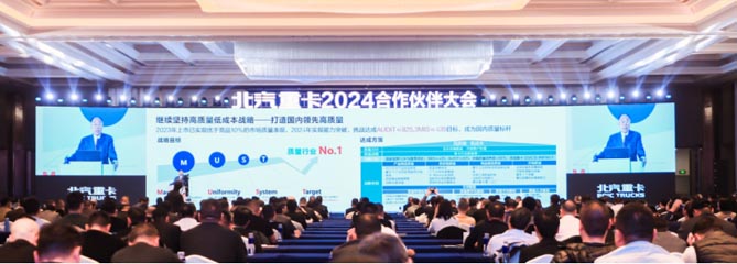 1月12日-13日,以“客户思维,创新驱动,驭势而上”为主题的北汽重卡2024年合作伙伴大会在江苏常州隆重召开。来自全国各地的经销商、服务商以及供应商合作伙伴、媒体代表齐聚一堂,共同回顾2023年北汽重卡发展中的成绩与不足,研判2024年重卡市场发展前景,开启2024年驭势增长的全新目标。
