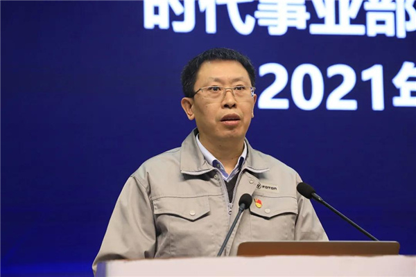 在庄严的国歌声中,大会拉开了序幕。福田汽车副总经理、时代事业部党委书记、总裁王术海作了题为《国六领军  销量翻倍  冲刺1000万 》的报告,对时代业务2020年市场绩效、产品创造、商品制造、运营管理体系业务等绩效进行了评估。同时结合新时代业务战略,统筹安排2021年目标及重点工作。