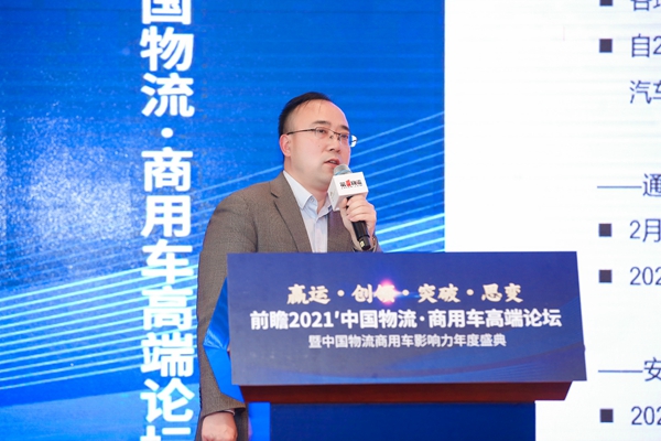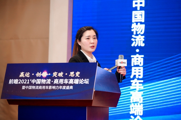 12月20日,由中国物流商用车专家委员会、第一物流网主办,以“赢运 创领 突破 思变”为主题的前瞻2021’中国物流·商用车高端论坛暨中国物流商用车影响力年度颁奖盛典在京隆重举行。