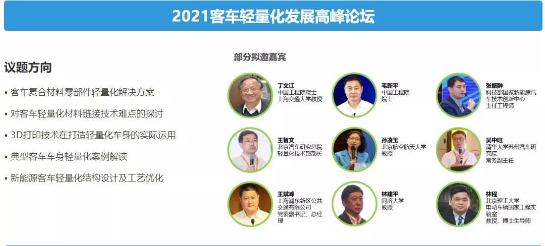 五大主题展分别是:氢燃料展、智慧公交、客车轻量化、客车制造技术及装备展、新能源汽车展。