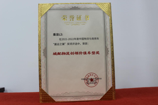 【乘龙L2轻卡获“城配物流创领价值车型”】