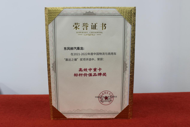 【东风柳汽获“高效中重卡标杆价值品牌”奖】