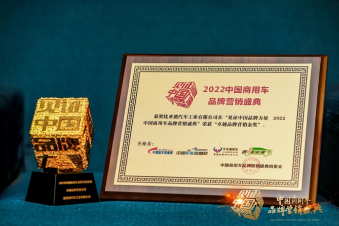 中国客车信息网“2022中国商用车品牌营销盛典”,比亚迪被评为“全球最受欢迎中国新能源商用车品牌”