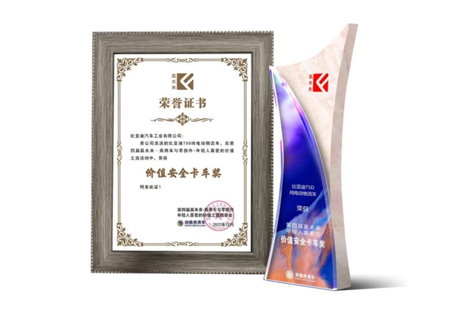 《中国汽车报》年度盛典中,比亚迪纯电动物流车T5D被评选为“绿色物流标杆”,尽显新能源轻卡引领者风范。此外,还有“城市配送榜样车型”“赢未来·年轻人喜爱的价值安全卡车奖”等荣誉加持,加码比亚迪物流车整体产品竞争力的提升。