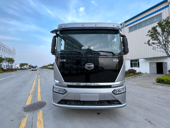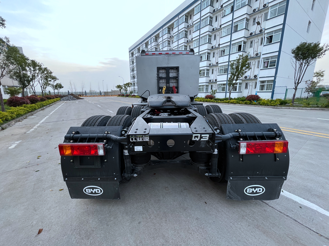 作为新能源重卡产品的“中枢系统”,比亚迪同时掌握电池、电机、电控“三电”核心技术及配套充电设施,将各种完全自主“黑科技”都应用到比亚迪Q3纯电动牵引车身上。