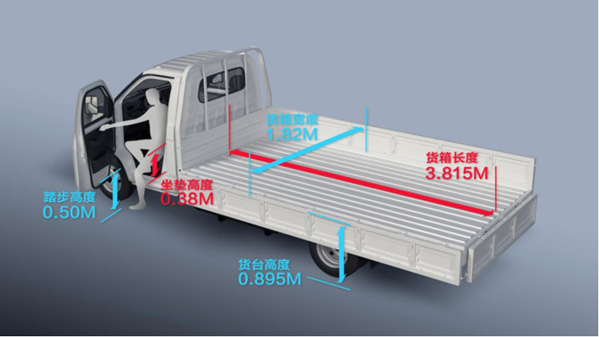 新能源微卡主要用于货拉拉、快狗打车等货运平台的货物运输,涉及商超配送、电商配送、快递物流、零售配送、家具物流、医药物流等全生活场景,而不同的应用场景就对运输工具的装载尺寸提出了严苛的要求。小象EV作为一款全新纯电微卡车,3815mm×1820mm×380mm的货箱尺寸堪称同级之最,是凸头电动大微卡唯一3815mm长的货箱,同比竞品多装10%。在承载方面,小象EV采用带大梁的非承载式车身结构,1.5吨前桥+162mm车架,成就其行业唯一4.3吨总质量电动大微卡的强悍承载力,单趟同比竞品多拉35%货物。大空间+高承载的性能优势,让多拉快跑、高效创富的用户需求得以轻松实现。