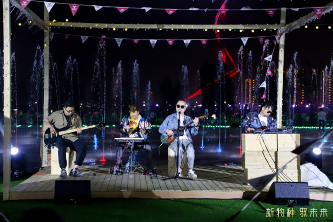 现场最嗨的区域当属主舞台区,活动邀请了潮流乐队、DJ和MC喊麦表演,以灯火璀璨的沂河为背景,用炸场的音乐点燃现场观众的激情,搭配现场喷泉表演,将整个活动不断推向欢乐的高潮。
