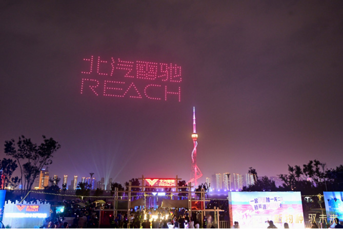 晚上九点,在美丽的沂河岸边上演了一场大型无人机表演秀,百架无人机在空中不断变幻,拼成“北汽雷驰、新能源MIIN卡、我❤临沂、新物种 驭未来”等图形、文字,为5月22日的新品发布会预热应援,引得现场观众阵阵欢呼。临沂是中国市场名城、中国物流之都,北汽雷驰是临沂一张亮眼的城市企业名片。新能源MINI卡在这里孕育,在这里诞生,它的问世,填补了临沂新能源商用车的市场空白,未来将助力临沂打造“绿色物流标杆城市”。