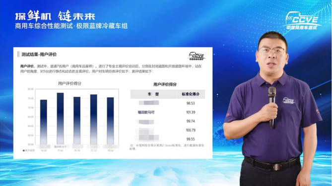 在用户评价测试中,7名进行了专业主观评价培训,参与封闭道路和开放道路测试的品鉴师,站在用户的角度,对参与评测的5台极限蓝牌冷藏车进行静态和动态的主观评价。最终,全新一代欧马可S1冷藏车产品101.39的优异成绩,斩获第一,成为最受品鉴师喜爱和信赖的极限蓝牌冷藏车。
