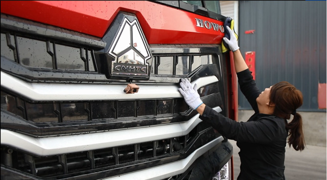 提了新车的李润兰一大早就开始了忙碌的一天,由于打心眼里爱卡车,又对中国重汽充满好感,能够开上豪沃新车让她不免有些“喜出望外”,然而她手头的工作却片刻没有懈怠。装货、解决送货问题,她游刃有余地应对运输中的形形色色,麻利地在几米高的大货车上爬上爬下,娴熟地检查车辆状态,一气呵成完成盖篷布、绑绳子等工作……可以说,男司机能做的事情从来难不倒这位卡姐。