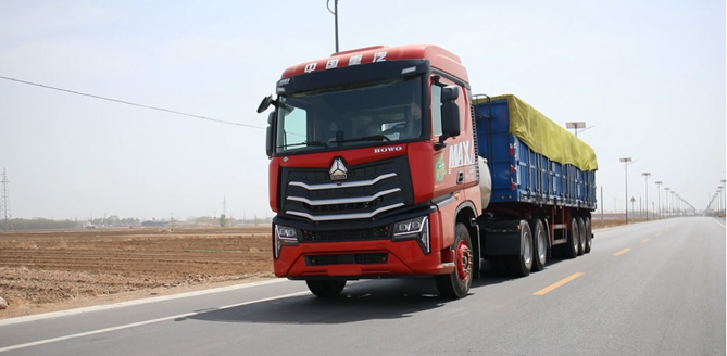 全新一代豪沃MAX燃气车发动机最大530马力,最大扭矩2500N·m,加速性能较市场平均水平提升11%,动力澎湃全工况无忧。这得益于中国重汽与潍柴动力的强强联合,车辆采用行业独有的一体化原装原配无极S动力链,动力链与整车一体化标定一步到位,并搭载整车进行道路试验验证及三高试验超100万公里,B10寿命达到180万公里的行业至高标准,确保了车辆交到客户手中已经是高效可靠的整车产品。对于李润兰来说,全新一代豪沃MAX燃气车带来的安全感,是她独自一人跑运输最大的底气。