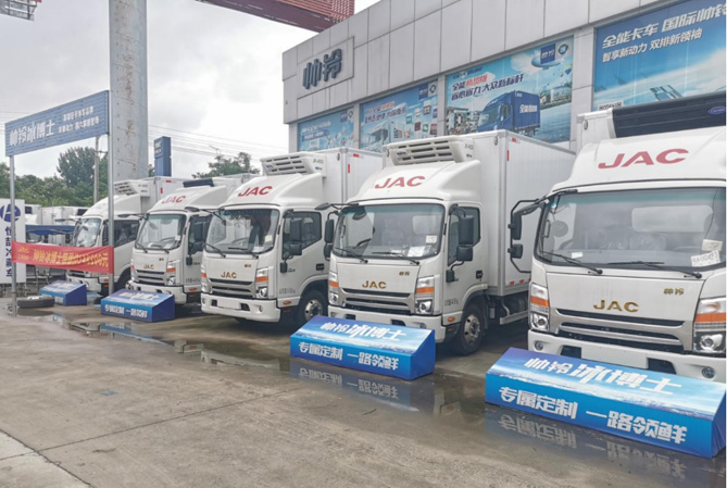 工欲善其事,必先利其器。在阜阳雨润工厂、临泉天邦工厂、颍上牧原工厂,江淮1卡冷链1号系列冷藏车产品受到冷链物流公司和广大用户的高度认可,帅铃、骏铃、恺达、德沃斯等冷藏车产品的综合市占率超过60%,每天源源不断地将冷鲜肉、蔬菜等通过物流发往全国各地,特别是江浙沪地区。