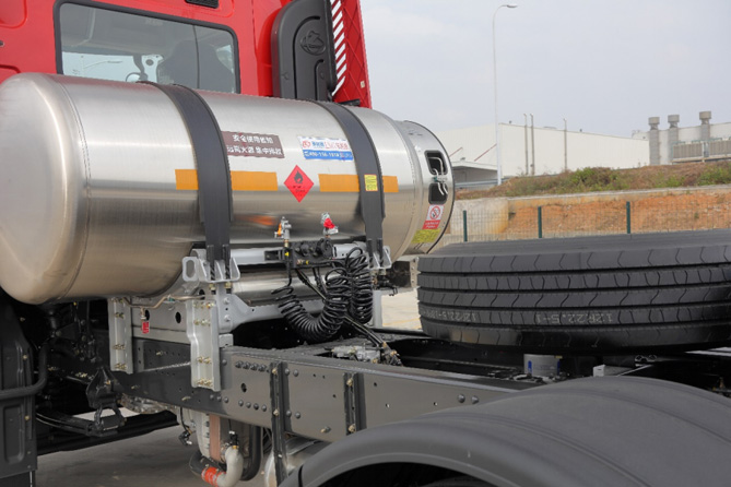 在内饰方面,乘龙H7 LNG牵引车配备皮质高端座椅,让卡友更能舒适运营。全新液晶仪表带来更多智能体验。并且优化储物空间、升级天窗、增加晾衣杆,为卡车司机长途行车带来更多便利。整车采用龙骨框架结构驾驶室+整体式防撞车门结构,进一步保障驾驶安全。LNG气瓶经过经过跌落、火烧、冲击、振动等多项工况验证和严格试验,安全使用无隐患。