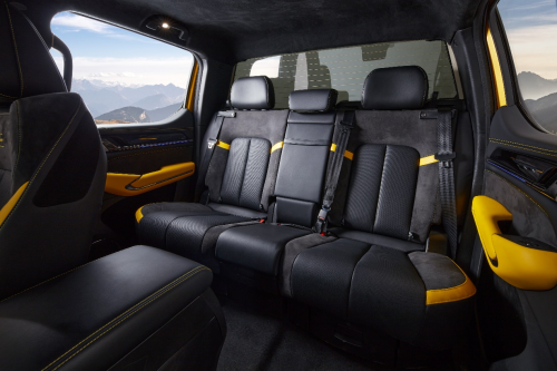 山海炮性能版前排座椅最高支持8向调节,配备加热、通风、记忆功能;皮卡首创后排座椅电动调节,最大靠背角达33度;加上配备双层隔音玻璃,车箱与车身全密封设计,成就百万级以内最舒适、最安静的皮卡。