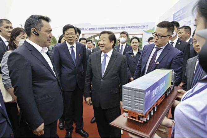 5月20日,以“绿色新时代 共建新丝路”为主题的吉尔吉斯斯坦1000台中通客车首批车辆下线仪式在中国重汽聊城中通客车股份有限公司隆重举行,吉尔吉斯斯坦总统萨德尔·扎帕罗夫亲临现场。一国总统亲自上门“提车”,而且出手就是1000台的超级大单,创下了中国对吉尔吉斯斯坦客车出口的新纪录。