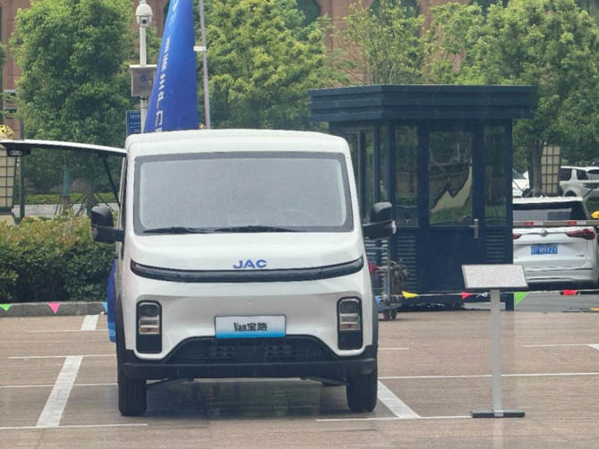 江淮1卡Van宝路纯电车型,聚焦配送末端,外观设计圆润、萌动,人见人爱。对开尾门设计,装卸货更方便。其采用3.38米短轴距设计,转弯半径6.5米,灵活小巧。同时匹配磁同步电机,峰值功率达到77千瓦,峰值扭矩230牛米,最大爬坡度大于20%。其搭载合肥国轩41.93千瓦时磷酸铁锂电池,工况续航里程最低251公里,每公里电费只需要1毛多,相比油车节能不是一星半点。另外,电动车窗、14寸MP5也是其中亮点,远程解闭锁、寻车、开关窗等功能更显智能特质。