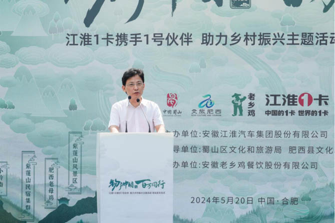 安徽省合肥市蜀山区文化和旅游局局长李正珊也对江汽集团成立60周年表示了祝贺,并表示文旅产业与乡村振兴是相辅相成的,“物产中国 百万同行”活动正是连接两者的桥梁,通过高效的物流支持,将乡村的特色物产和文旅资源送往全国各地。未来,合肥文旅将深化与江淮1卡的合作,共同推动文旅产业和乡村振兴的发展。