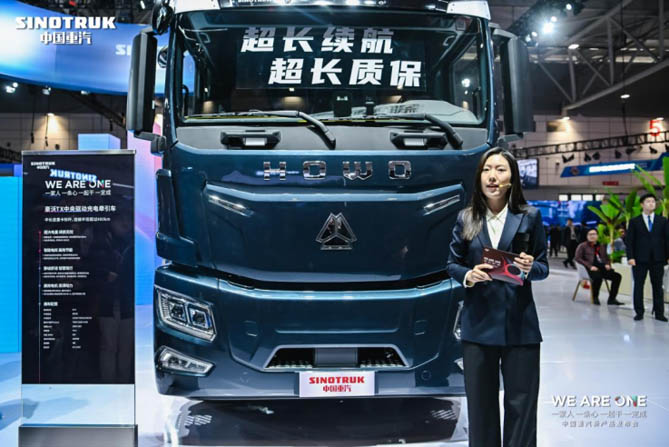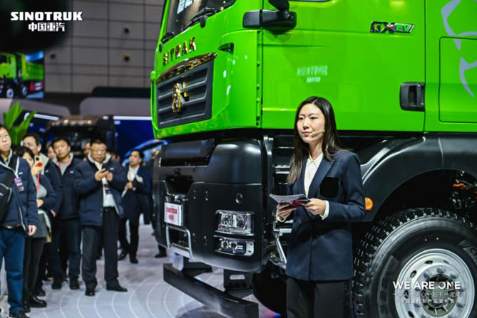 中国重汽新能源全场景系列新品发布会上,五大新能源新品震撼登场,让人目不暇接。五款新品作为智慧出行与绿色出行的领航先锋,凭借硬核实力满足不同领域的多元化需求。在自卸车细分领域,豪沃TX 612kWh纯电自卸车凭借超大电量、超长续航优势获得现场一致好评。车辆搭载全新一代高能量密度电池,续航里程可达430km,其电池、电机、电控均由中国重汽自主研发,实现精准节能、续航无忧。汕德卡423kWh纯电自卸车以扛鼎之姿霸气登场,该车型配备了8+8+8/300三层车架,铸造飞机梁横梁,TG驾驶室顶部、侧面及后方可承受高达10吨的强烈冲击,以钢铁之躯铸就超强承载和更强防护。