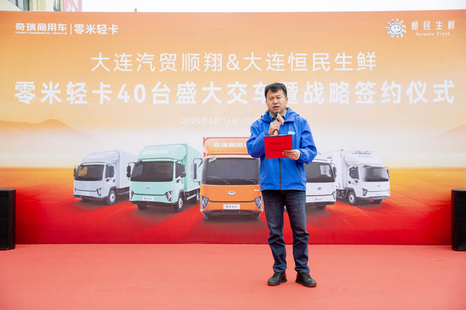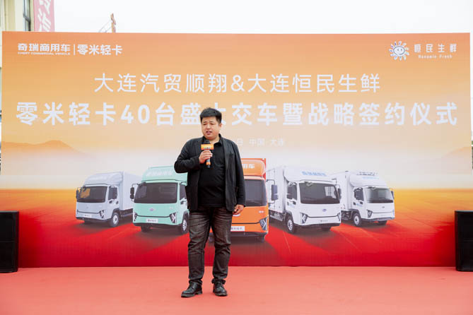 大连恒民生鲜副总经理周健城现场致辞时表示,“零米轻卡服务好、品质高,满载货物动力依然强劲,非常适合高频短途、多点配送的城配场景,得到了众多行业客户的认可信赖。未来,我们将继续与零米轻卡保持深入合作,共同推动东北区域生鲜行业及新能源物流发展进入新征程。”