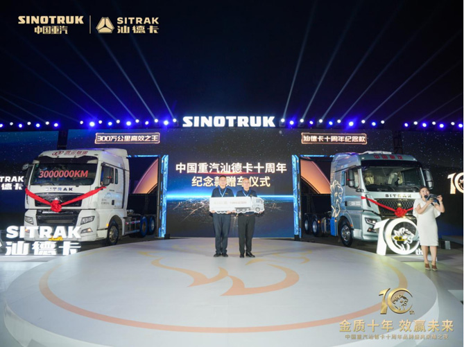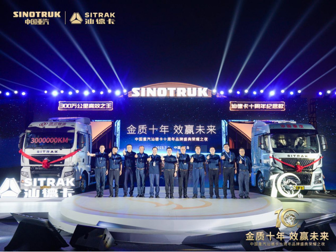 中国重汽集团党委副书记、常务副总经理王琛表示:十年来,中国重汽汕德卡始终秉持“客户满意是我们的宗旨”核心价值观,坚持“用户利益最大化”为源动力,在自主创新研发、性能超越引领、质量高效提升、全生命周期服务等方向全面发力,凭借“德系品质”的高端体验给每一位卡友带来了完美的产品选择,以“进口替代”的先进技术成为国内高端重卡的领跑者,以实际行动推动民族商用车行业驶入高质量发展的快车道。
