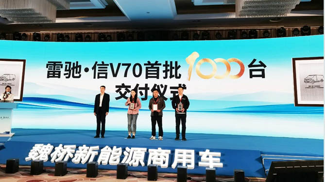5月11日,魏桥新能源商用车在临沂发布战略、品牌,并举行雷驰·信V70量产交付仪式。凭借魏桥创业集团铝业巨头的产业链优势,将儒家文化与科技完美结合,其产品品牌包括“仁、义、礼、智、信”。雷驰·信以“信”作为安身立命的根本要义。