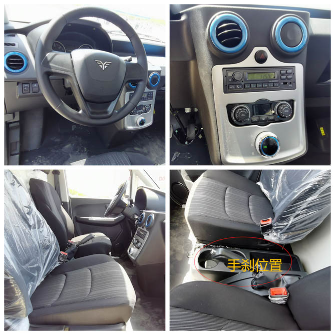 主副驾中间平地板贯通式设计,方向盘总体小巧灵活,手刹设计更贴合驾驶员一侧,旋钮式换挡,手动调节式空调、大方中控液晶仪表,让人有更为轻松的驾驶感受。