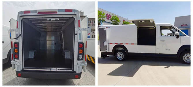 这一设计,解决的是城市物流及短配市场在狭窄街区运行、下地库(2米限高),以及长约3米的货物装载痛点。
