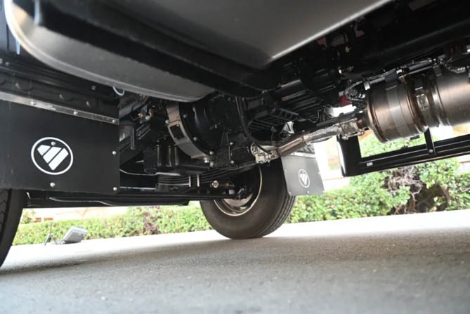 该车型轻载版匹配750高强度单层车架、玉柴200马力发动机、法士特八档箱、小速比高承载后桥、275扁平胎,这样的黄金配置,在硬实的路面运输游刃有余且高效节油。