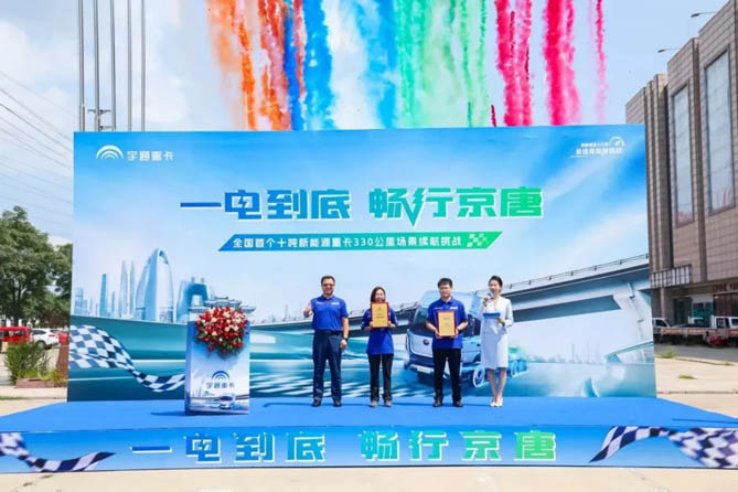 事实胜于雄辨。2024年8月14日,宇通重卡在河北唐山举行“一电到底,畅行京唐”全国首个十吨新能源重卡330公里场景续航挑战。