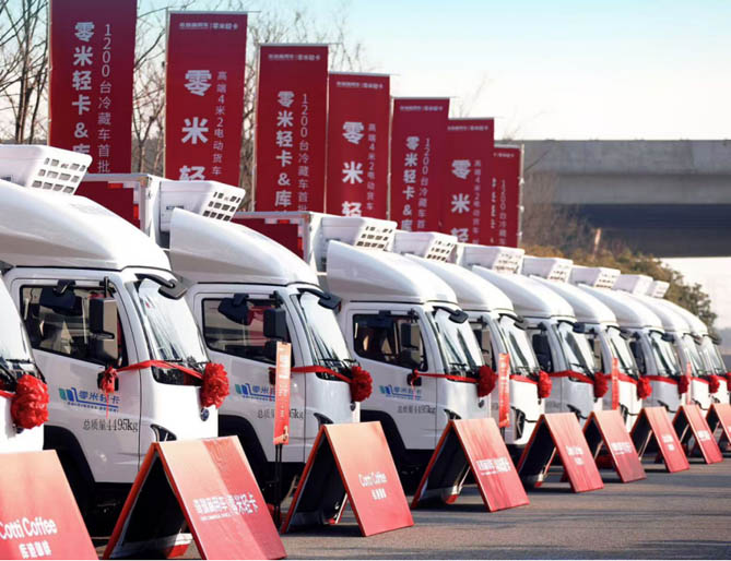 库迪咖啡采购1200台零米冷藏车首批交付车辆现场展示