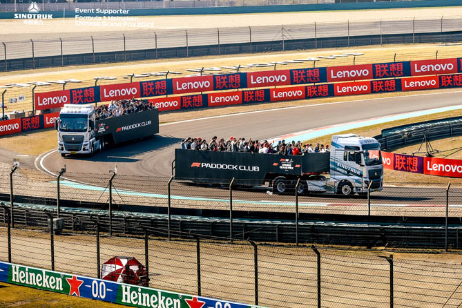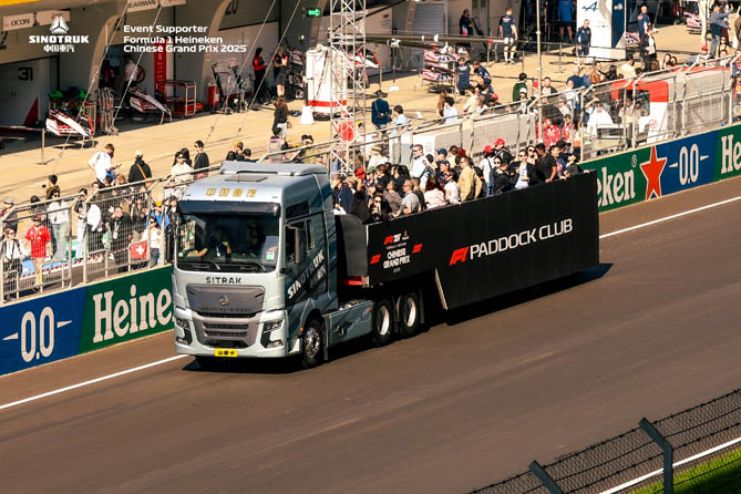 而3月23日正赛日,中国重汽的赛事涂装巡游车将化身“钢铁先锋”,在全球顶尖F1车手的驾驶下开启赛道巡礼。聚光灯下,身份尊贵的国际顶级车手们,将从SITRAK驾驶舱中挥手向观众致意。