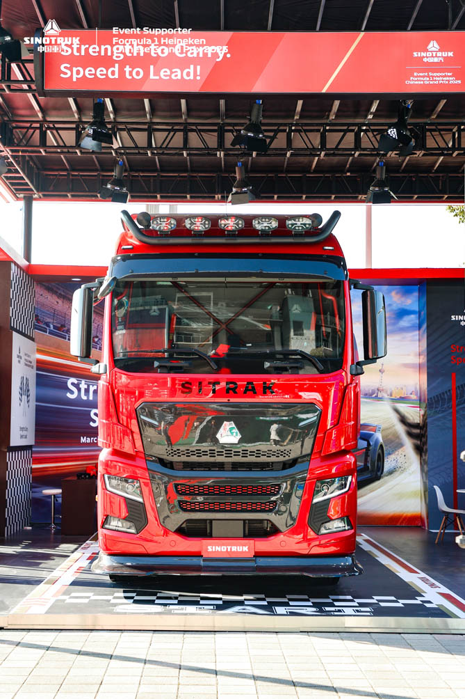 中国重汽作为官方支持商高调亮相,其专为赛事定制的SITRAK赛道版重卡,成为最受关注的风景线,一抹“中国红”成为现场的焦点。其以“Strength to Carry Speed to Lead”为核心理念,展示了SITRAK汕德卡品牌的硬核实力,体现出中国高端智造的创新与力量。