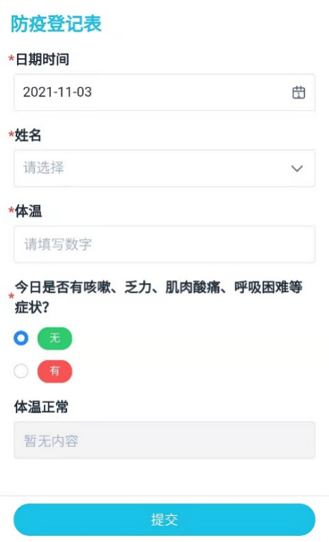 从严从紧抓好疫情防控工作,确保全体进博保障人员14天内未离开上海,并在保障期间,需每日进行健康信息上报。申沃客车运用数据管理系统,增加电子防疫登记表。保障人员可通过手机端随时上报个人健康信息,大幅提高了防疫工作效率。